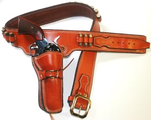 Inspired from the movie, Mr. Marston designed a holster with a drop loop belt, available also in a high rise style. The belt is Ranger style, but if you prefer we can make it a Tapered belt. This rig has three bullet loops forward from the holster, and the finish is smooth.