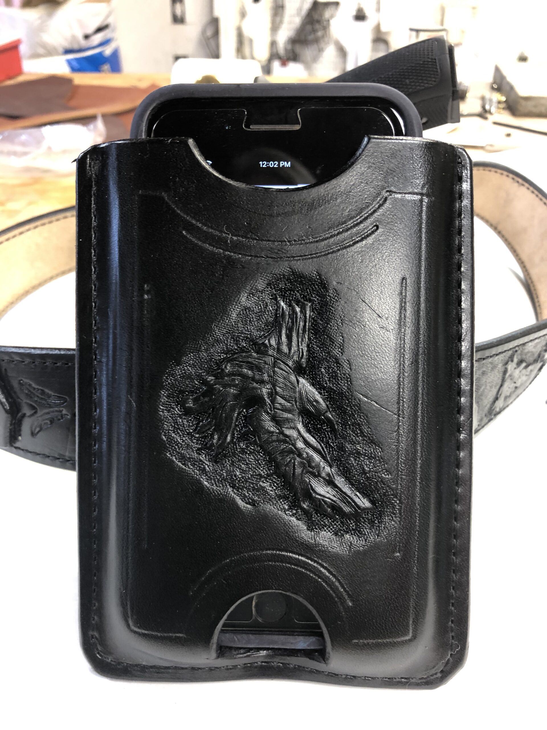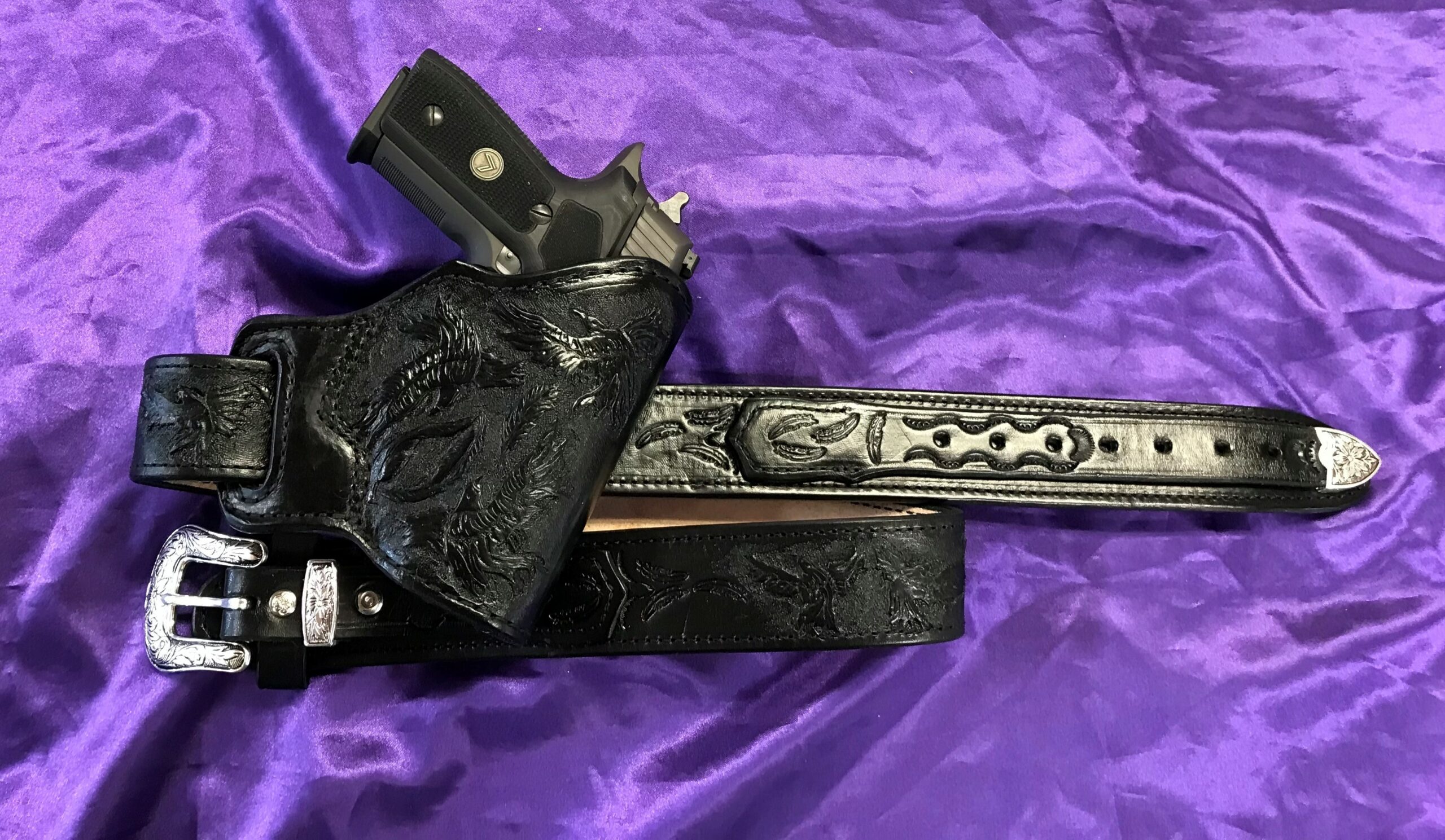 This holster is hand-carved with a ‘raven’ theme 500. (as shown) additionally this customer