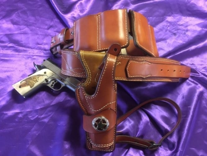shown in Saddle Tan, smooth texture, with an extra straight mag pouch (add 75.00)